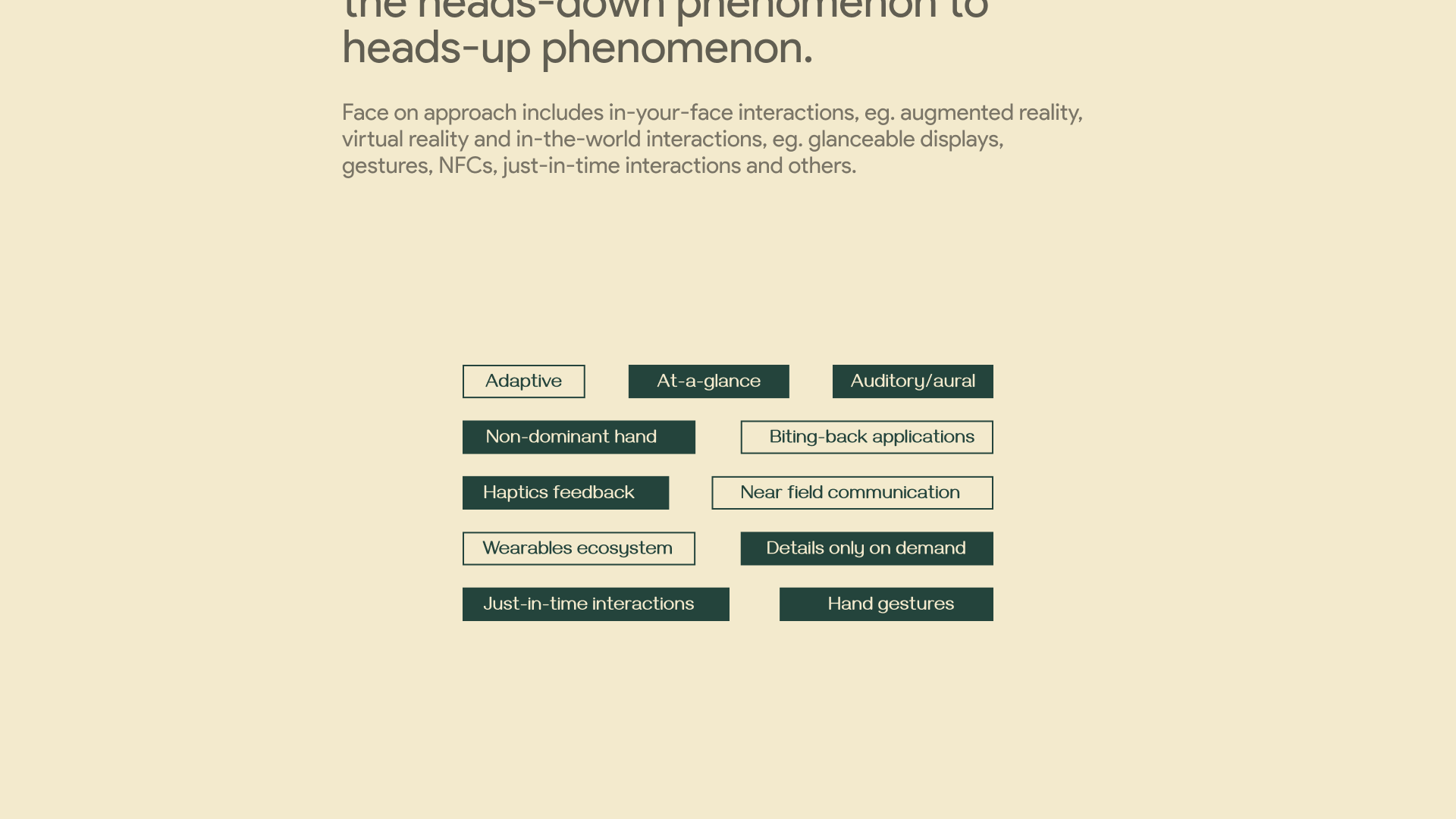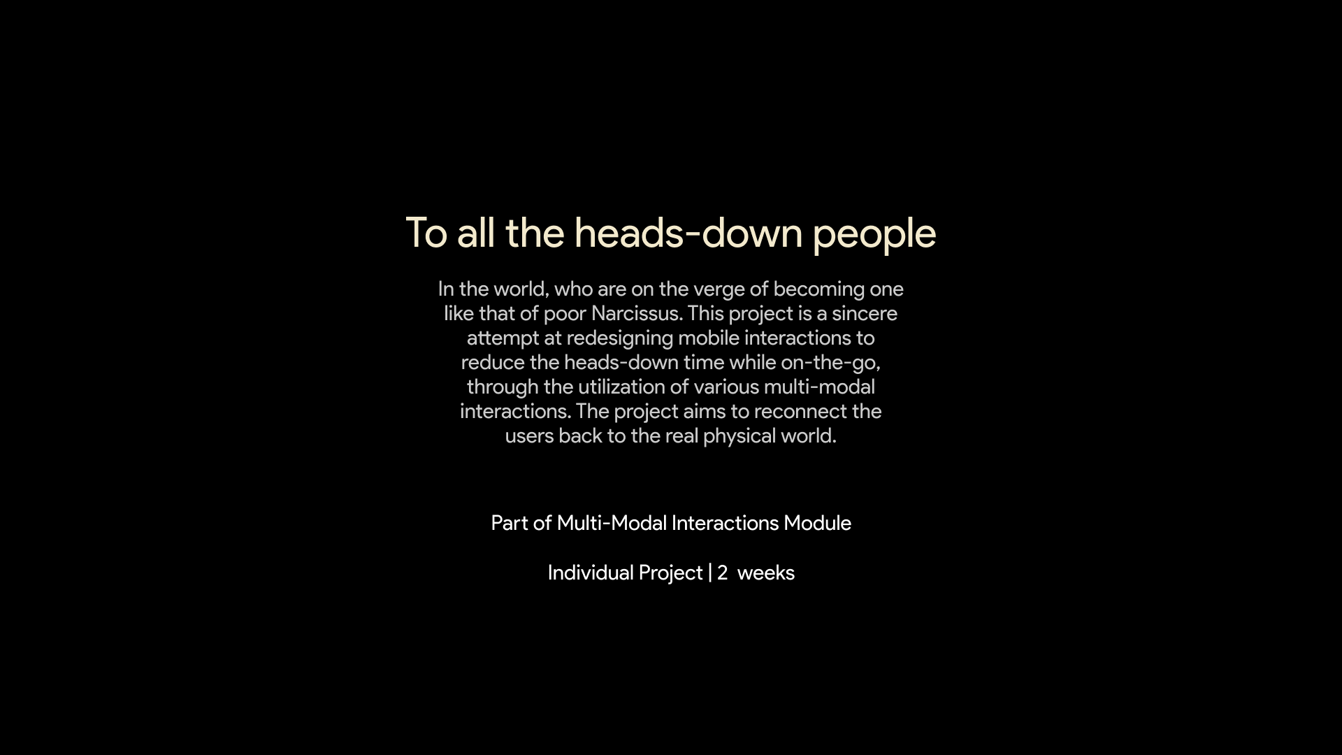 2 weeks | Multi-Modality, Heads-Up Design, Interaction Design